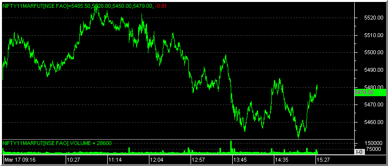 The projected levels of Momentum Signal values applicable to various ranges of closing values of the current month Nifty Futures, Nifty Index and the BSE Sensex, as at the close of next trading day, ie. as on 18th March, 2011, are given in the following table. All readers are requested to take note that the table below is just a ready reckoner for the next day's Momentum Signal values and the figures are not intended to be interpreted as any targets for the Nifty futures or indices shown therein.